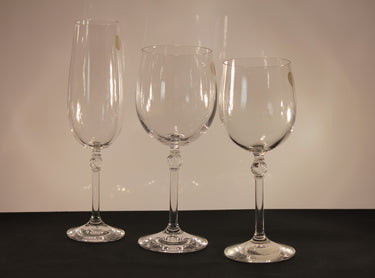 - Composizione: n. 11 Bicchieri Acqua, n. 12 Bicchieri Vino, n. 24 Flutes