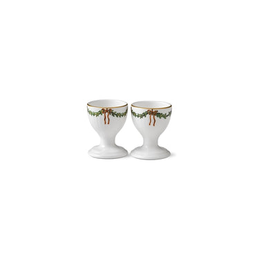 Un classico su molte tavole per la colazione, il set di due portauova in Star Fluted Christmas diffonde la gioia del Natale ogni mattina di festa. Sui graziosi portauova, una dolce decorazione di ghirlande di abete e fiocchi rossi diffonde la gioia del Natale. Il bordo dei portauova è bordato in oro per un tocco di eleganza.